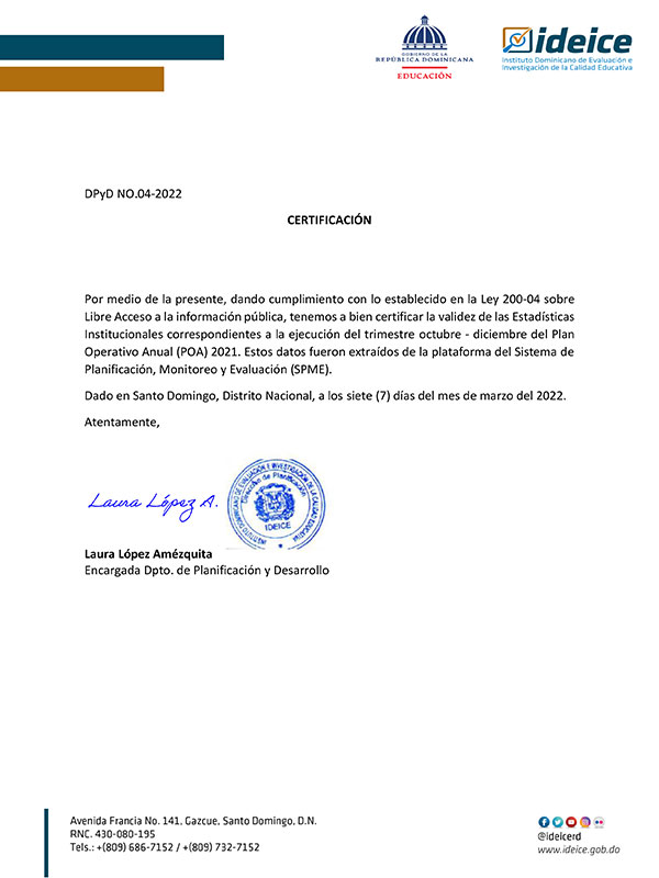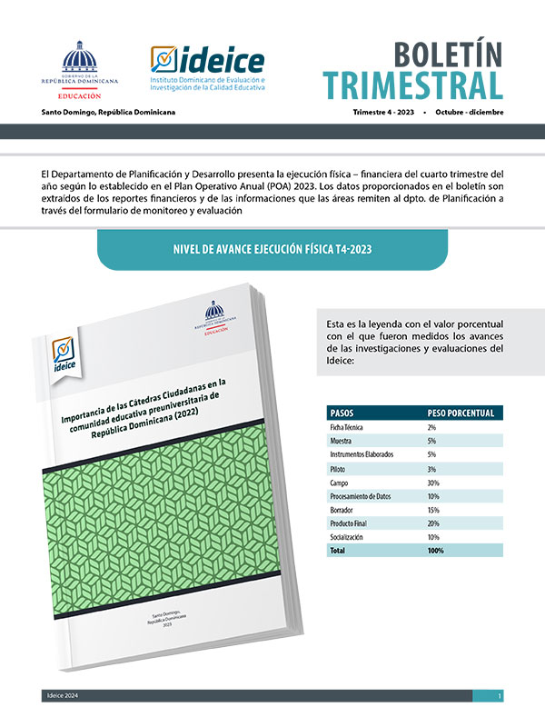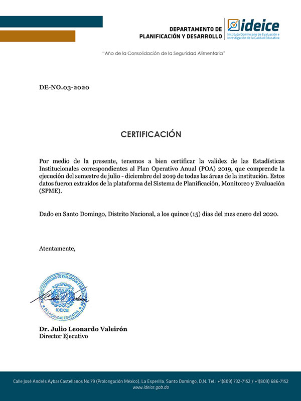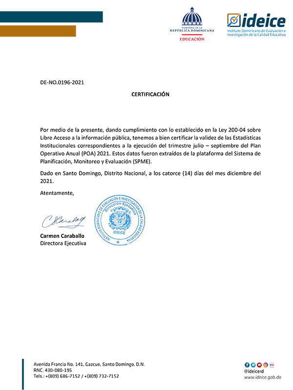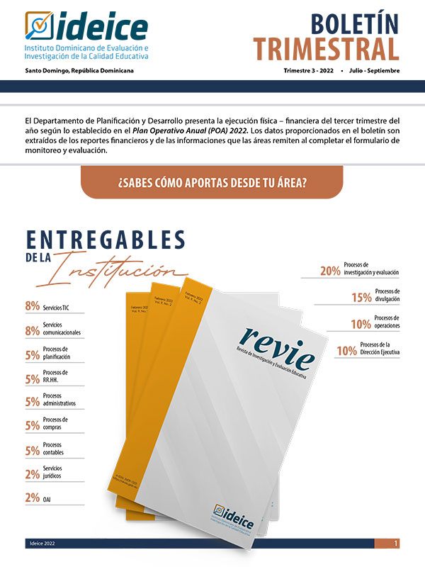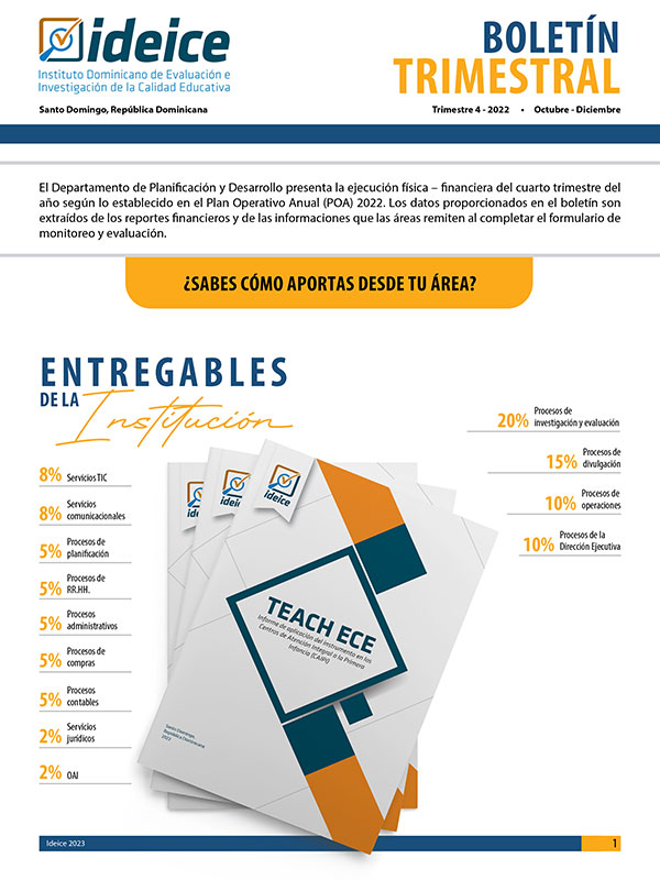 Para cumplir su misión, el IDEICE tiene la responsabilidad de determinar y rendir cuentas sobre la calidad de la educación y del desempeño de los diferentes actores, ámbitos, niveles y modalidades en que se organiza y opera el Sistema.